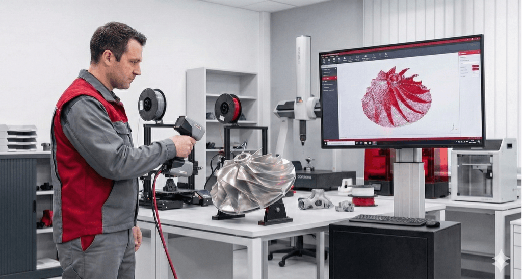 Permet la digitalització precisa d’objectes físics per obtenir models 3D fidels a la realitat. Aquesta tecnologia és ideal per a enginyeria inversa, control de qualitat i reproducció de peces, ja que captura geometries complexes amb gran exactitud, optimitzant els processos de disseny, validació i fabricació.